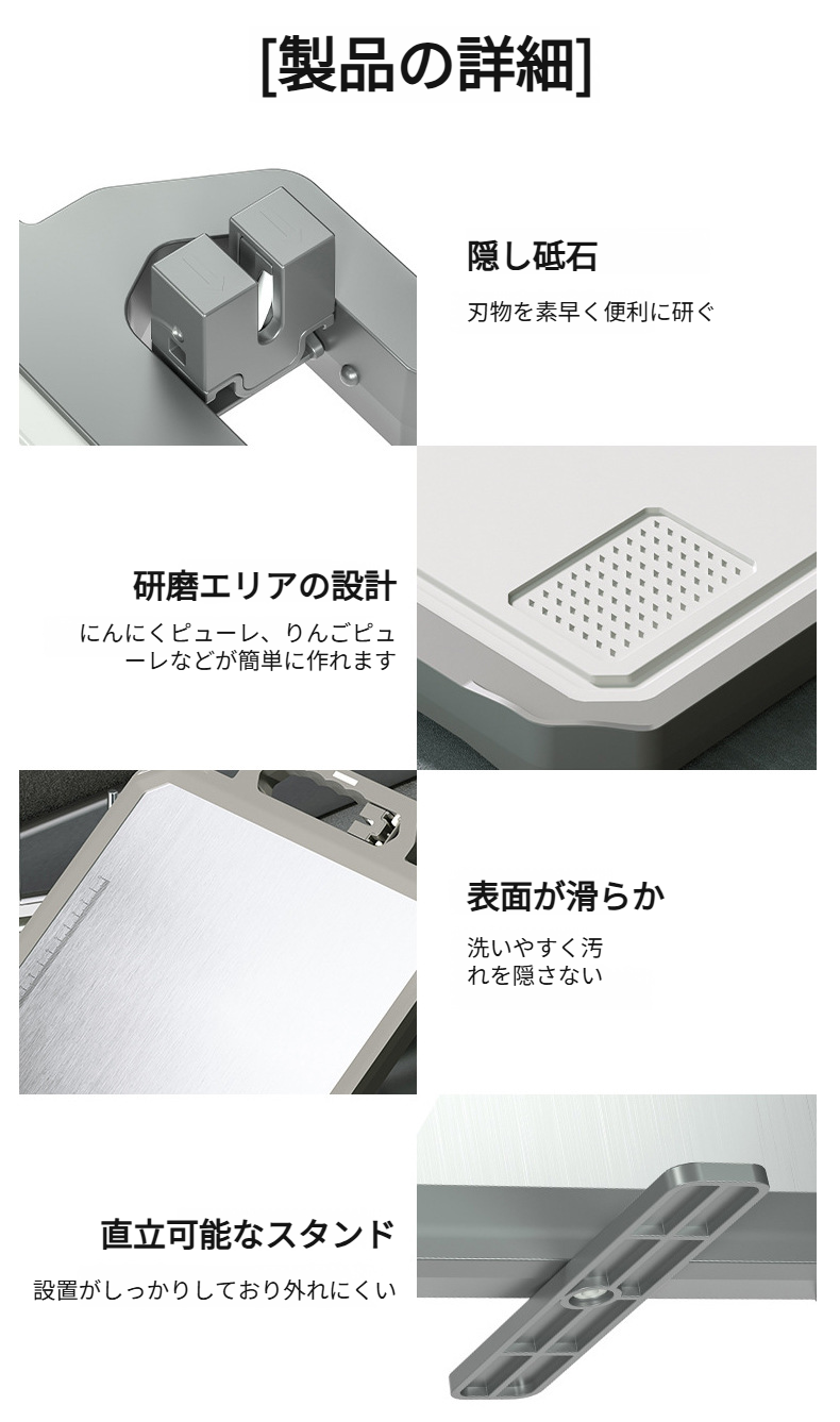 抗菌・防カビ機能付きステンレスまな板のアップ写真